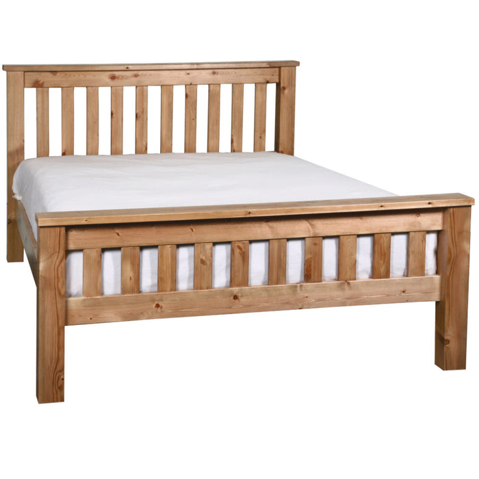 Farm House Chunky Slatted High Foot End Solid Pine Wooden Bed Frame
